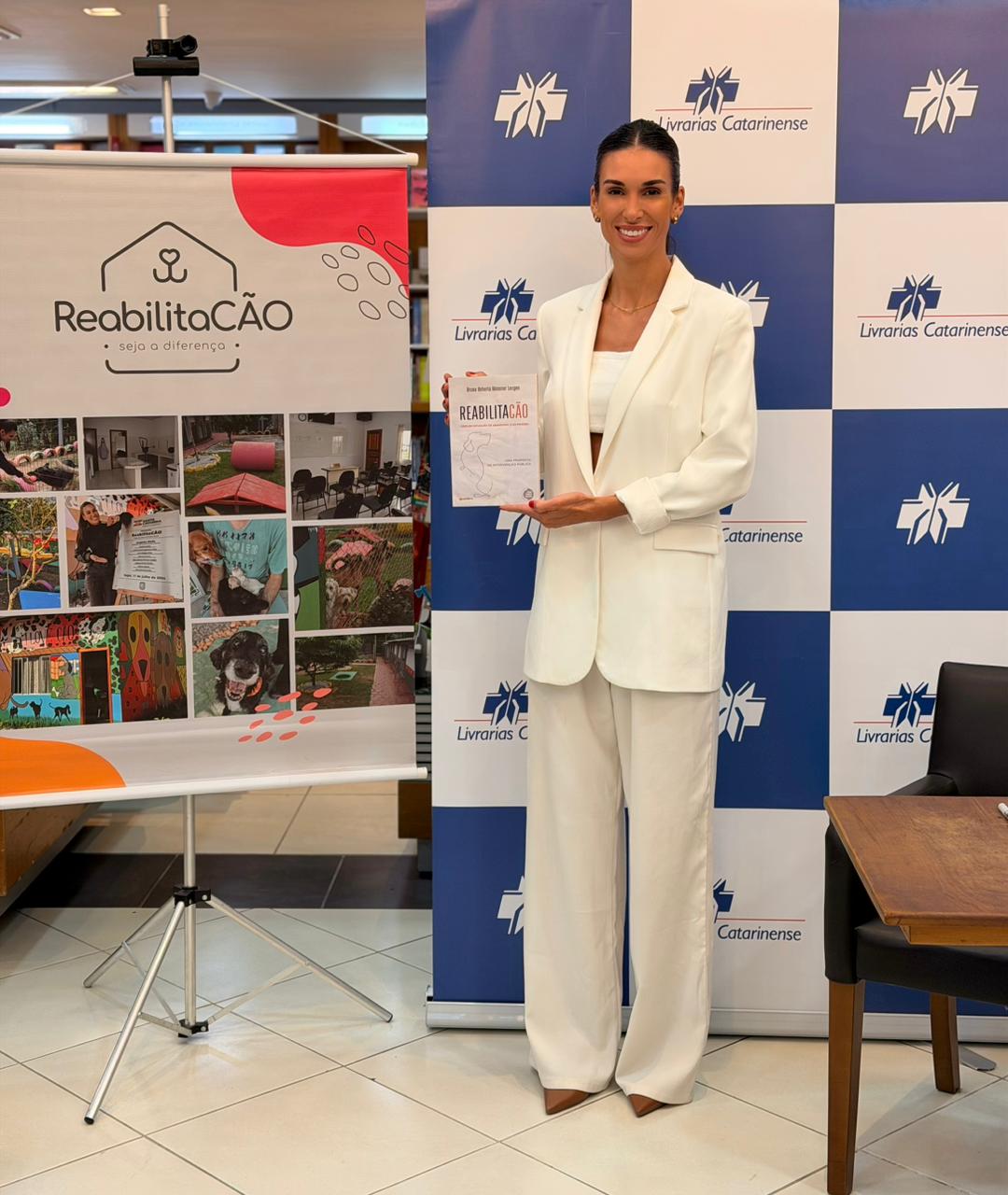 O trabalho que une ressocialização de pessoas privadas de liberdade e proteção animal ganhou registro em livro. A policial penal Bruna Longen lançou, na noite de quinta-feira (5), a obra “ReabilitaCão: cães em situação de abandono e as prisões”, que apresenta a trajetória e os resultados do programa criado por ela dentro do sistema prisional de Santa Catarina. O evento ocorreu na Livraria Catarinense, no Shopping Beiramar, em Florianópolis, e reuniu autoridades, colegas de trabalho, amigos e familiares da autora.