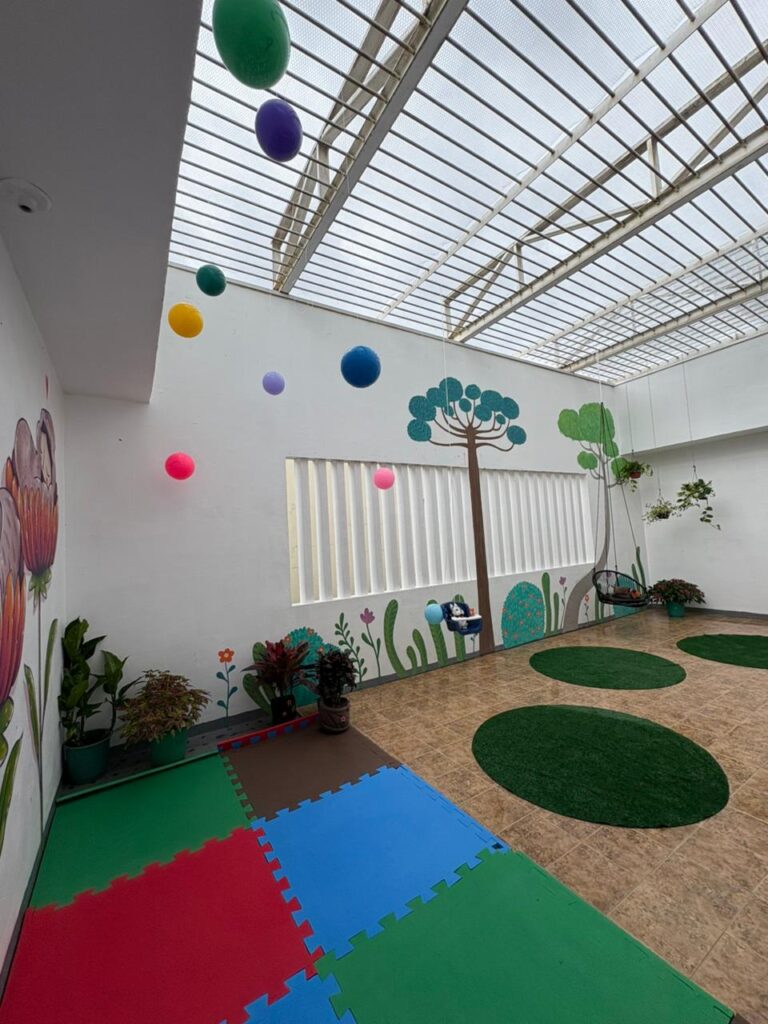 O ambiente, antes totalmente branco e sem atrativos, é o único local ao ar livre onde os bebês de até seis meses — ou, em casos excepcionais, até nove meses ou um ano — têm contato com a luz natural. A revitalização trouxe não apenas cores e texturas, mas também balanços, painéis artísticos e elementos sensoriais planejados para favorecer o desenvolvimento saudável nessa fase tão decisiva da vida.
